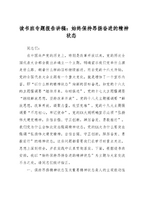读书班专题报告讲稿:始终保持昂扬奋进的精神状态.docx