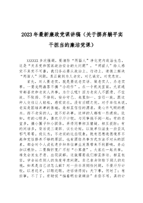 2023年最新廉政党课讲稿(关于摒弃躺平实干担当的廉洁党课).docx