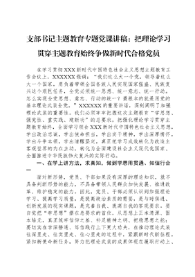 支部书记主题教育专题党课讲稿:把理论学习贯穿主题教育始终 争做新时代合格党员.docx