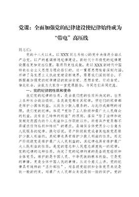 党课:全面加强党的纪律建设,使纪律始终成为“带电”高压线.docx
