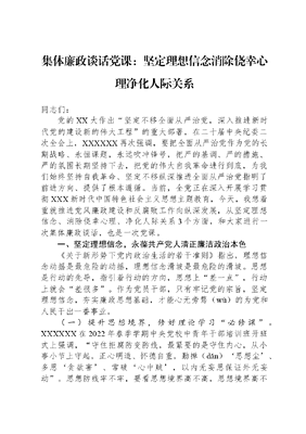 集体廉政谈话党课:坚定理想信念,消除侥幸心理,净化人际关系.docx