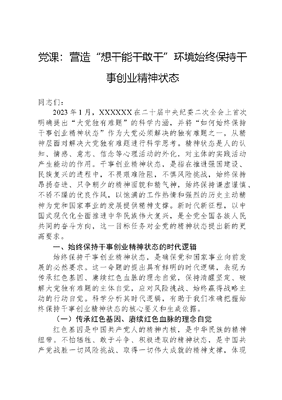 党课:营造“想干能干敢干”环境始终保持干事创业精神状态.docx