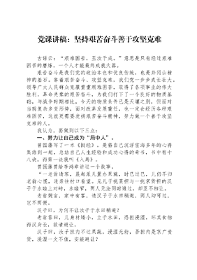 党课讲稿:坚持艰苦奋斗善于攻坚克难.docx
