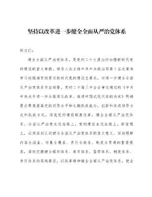 二十届三中全会精神解读讲稿:坚持以改革进一步健全全面从严治党体系.docx
