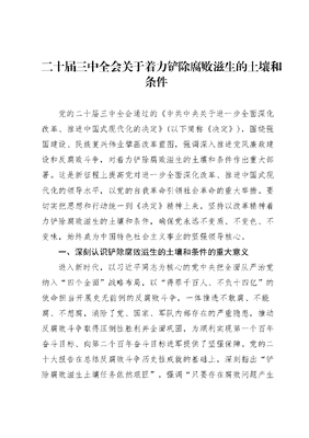 二十届三中全会精神解读讲稿:着力铲除腐败滋生的土壤和条件.docx