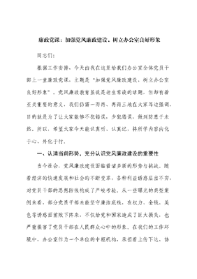 廉政党课:加强党风廉政建设,树立办公室良好形象.docx