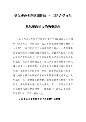 党风廉政专题党课讲稿:中国共产党百年党风廉政建设的历史逻辑.docx
