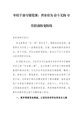 年轻干部专题党课:青春有为 奋斗无悔 守住拒腐防变防线.docx