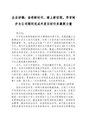 企业讲稿:奋进新时代、踏上新征程,昂首阔步为公司顺利完成年度目标任务凝聚力量.docx