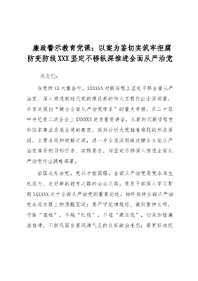 廉政警示教育党课:以案为鉴切实筑牢拒腐防变防线 坚定不移纵深推进全面从严治党.docx