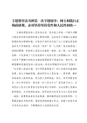 主题教育读书班第一次专题辅导:树立和践行正确政绩观,必须坚持坚持党性和人民性相统一.docx