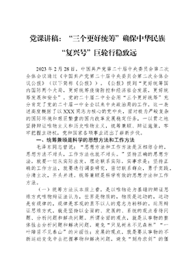 党课讲稿:“三个更好统筹”确保中华民族“复兴号”巨轮行稳致远.docx