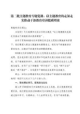 第二批主题教育专题党课:以主题教育的走深走实推动干部教育培训提质增效.docx