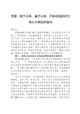 党课:敢于斗争、善于斗争,不断夺取新时代伟大斗争的新胜利.docx