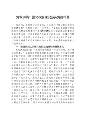 党课讲稿:强化政治建设,夯实党建根基.docx