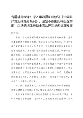 专题辅导党课:深入学习贯彻新修订《中国共产党纪律处分条例》,坚定不移把纪律挺在前面,以铁的纪律推动全面从严治党向纵深发展.docx