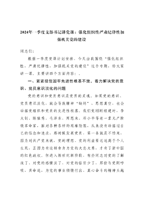 2024年一季度支部书记讲党课:强化组织性严肃纪律性加强机关党的建设.docx