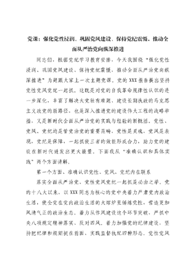 党课:强化党性浸润、巩固党风建设、保持党纪震慑,推动全面从严治党向纵深推进.docx