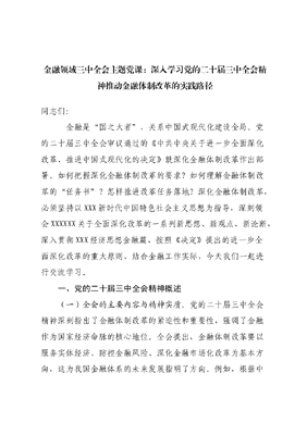 金融领域三中全会主题党课:深入学习党的二十届三中全会精神推动金融体制改革的实践路径.docx