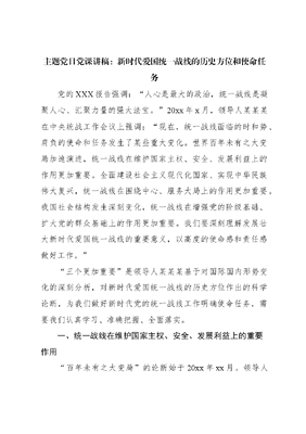 主题党日党课讲稿:新时代爱国统一战线的历史方位和使命任务.docx