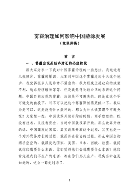雾霾治理如何影响中国能源发展——环保党课讲稿(30页).docx