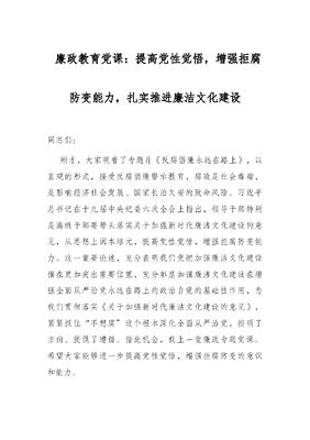廉政教育党课:提高党性觉悟,增强拒腐防变能力,扎实推进廉洁文化建设.docx