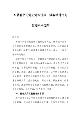 X县委书记党史党课讲稿:汲取精神伟力 奋进未来之路.docx