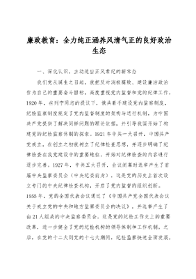 廉政教育:全力纯正涵养风清气正的良好政治生态.docx