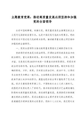 主题教育党课:推动高质量发展必须坚持和加强党的全面领导.docx