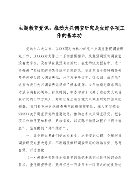 主题教育党课:推动大兴调查研究是做好各项工作的基本功.docx