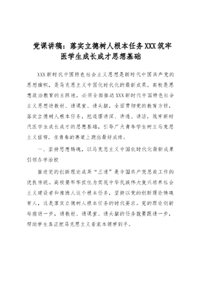 党课讲稿:落实立德树人根本任务 筑牢医学生成长成才思想基础.docx
