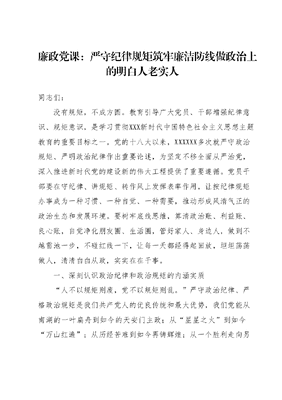 廉政党课:严守纪律规矩筑牢廉洁防线做政治上的明白人老实人.docx