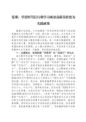 党课:学思悟、笃信行、将学习成效高质量转化为实践成果.docx