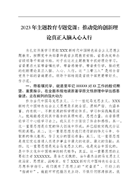 2023年主题教育专题党课:推动党的创新理论真正入脑入心入行.docx