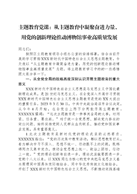 主题教育党课:从主题教育中凝聚奋进力量,用党的创新理论推动博物馆事业高质量发展.docx