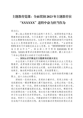 主题教育党课:全面贯彻2023年主题教育在“XXXXXX”进程中奋力担当作为.docx