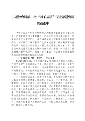 主题教育讲稿:把“四下基层”深度融通到履职践诺中.docx