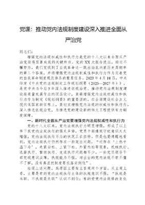 党课:推动党内法规制度建设,深入推进全面从严治党.docx