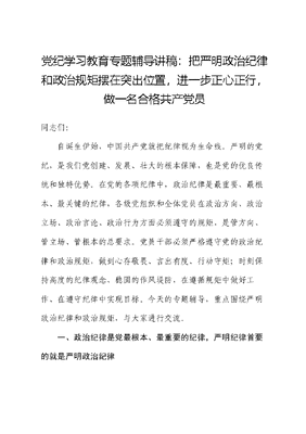 党纪学习教育专题辅导讲稿:把严明政治纪律和政治规矩摆在突出位置,进一步正心正行,做一名合格共产党员.docx