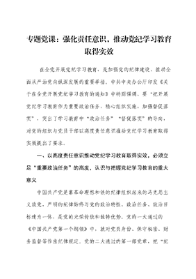 专题党课:强化责任意识,推动党纪学习教育取得实效.docx