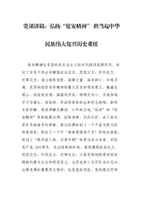 党课讲稿:弘扬“延安精神” 担当起中华民族伟大复兴历史重任.docx