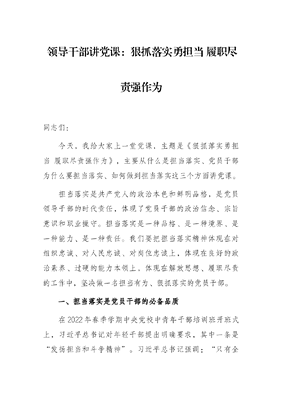 领导干部讲党课:狠抓落实勇担当 履职尽责强作为.docx