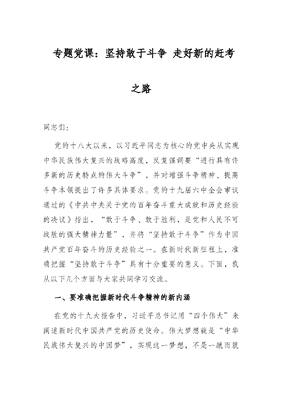 专题党课:坚持敢于斗争 走好新的赶考之路.docx