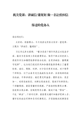 机关党课:讲诚信 懂规矩 做一名让组织信得过的党办人.docx
