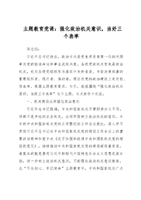 主题教育党课:强化政治机关意识,当好三个表率.docx