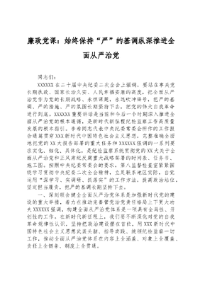 廉政党课:始终保持“严”的基调+纵深推进全面从严治党.docx