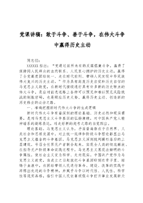 党课讲稿:敢于斗争、善于斗争,在伟大斗争中赢得历史主动.docx