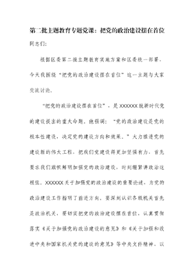第二批主题教育专题党课讲稿:把党的政治建设摆在首位.docx