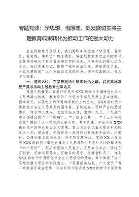 专题党课:学思想、悟原理、促发展,切实将主题教育成果转化为推动工作的强大动力.docx