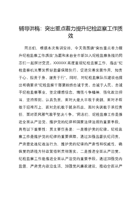 辅导讲稿:突出重点 着力提升纪检监察工作质效.docx